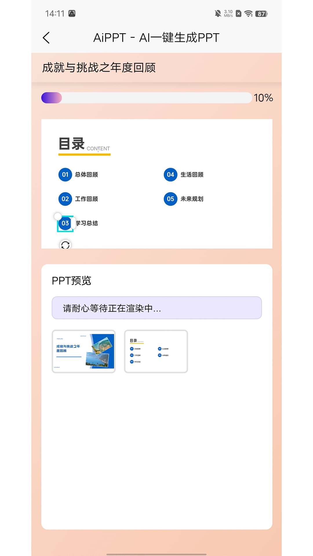 AiPPT提供了手机和电脑做PPT的方式,人工打磨精品模板库,输入主题就能一键生成完整PPT,大纲文案全由AI智能梳理,Word文档也能秒转演示文稿,全流程智能操作,新手也能快速做出专业高颜值PPT,无论是学校使用,还是职场上需要制作ppt,再也不用担心和别人一样啦。