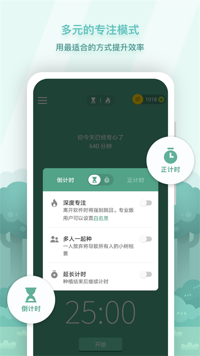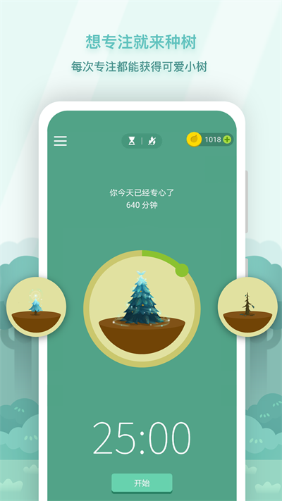 3.通过用户专注的时间,来帮助一颗颗小树茁壮成长,最后成为森林。