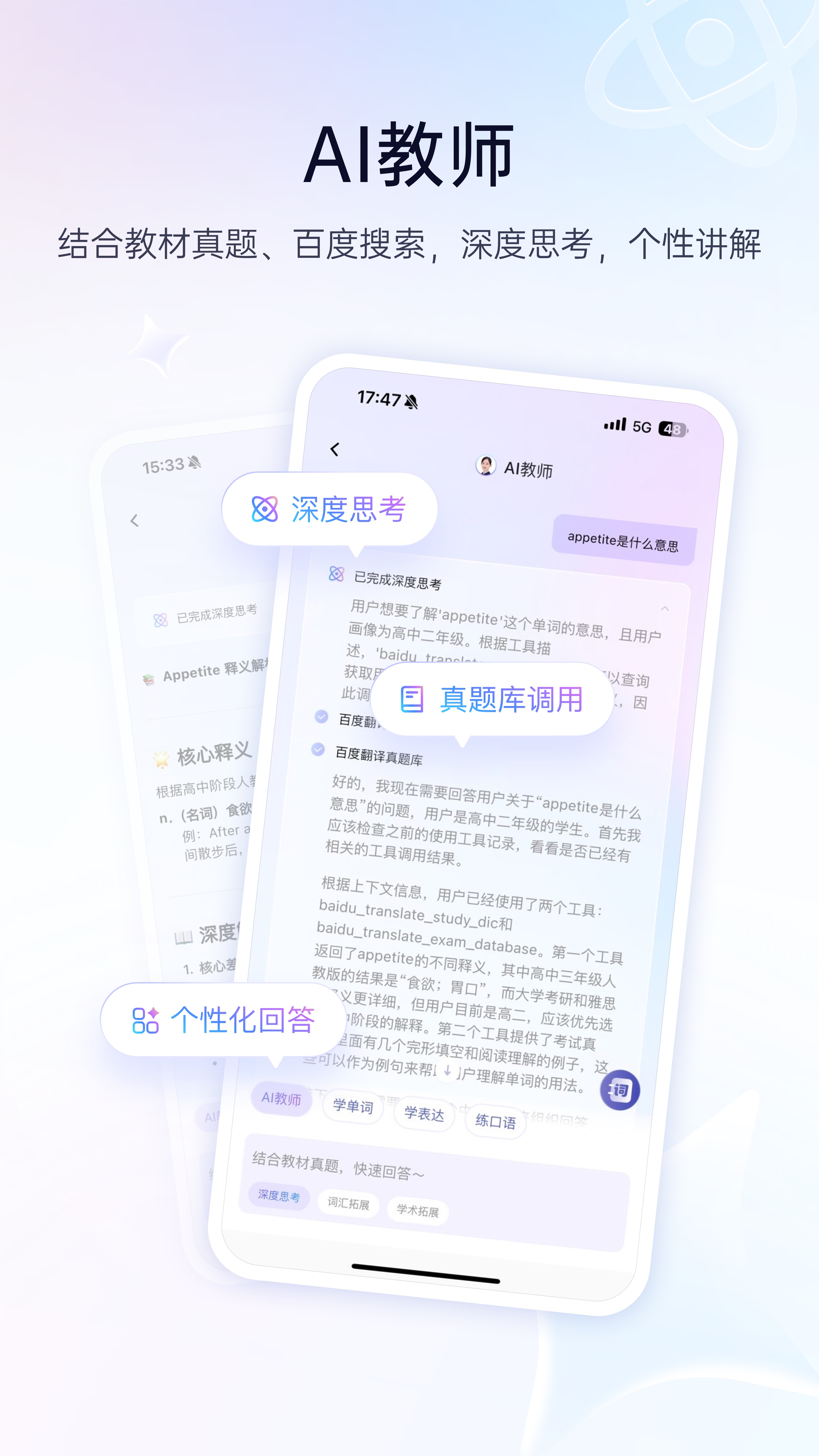 百度翻译app支持200+语种互译,AI大模型译文超精准,拍照、AR、涂抹三种翻译模式,让你学习和生活都可以更加方便,语音对话即时互译,出境留学或者工作都能轻松派上用场。牛津词典查词带例句,背单词、作文批改、句法分析全都有,离线包无网也能用,多端同步翻译记录,还能保存翻译数据。