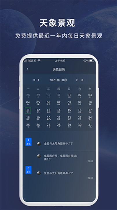 2、实时获取日出日落时间及行星等天体参数信息,方便学习与研究;