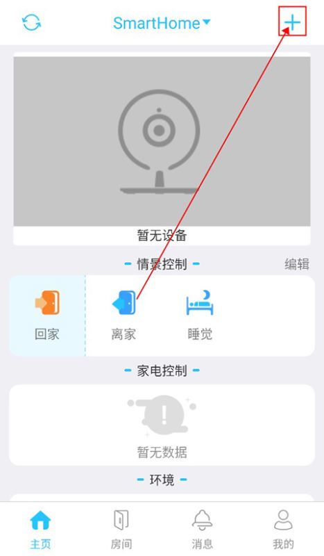 1. 完成安装后先完成账号的注册与登录,进入主界面后点击右上角的加号按钮,即可进入设备添加的操作页面。