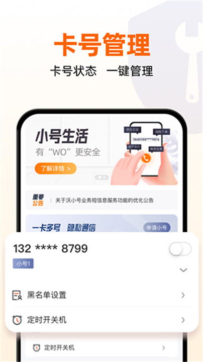 沃小号是帮助你保护信息隐私安全,注册小号电话卡的工具,具体来说能帮助用户便捷办理备用号码,有效避免主号信息泄露。该工具支持通话与短信等基础通讯服务,可大幅降低骚扰信息侵扰。操作流程简单易懂,用户能轻松管理多个通讯号码,在日常社交与工作沟通中构建安全的通讯环境。