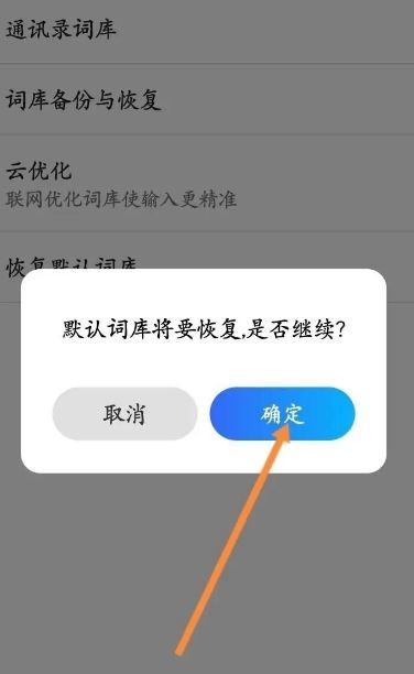 4、随后点击 恢复 默认词库。