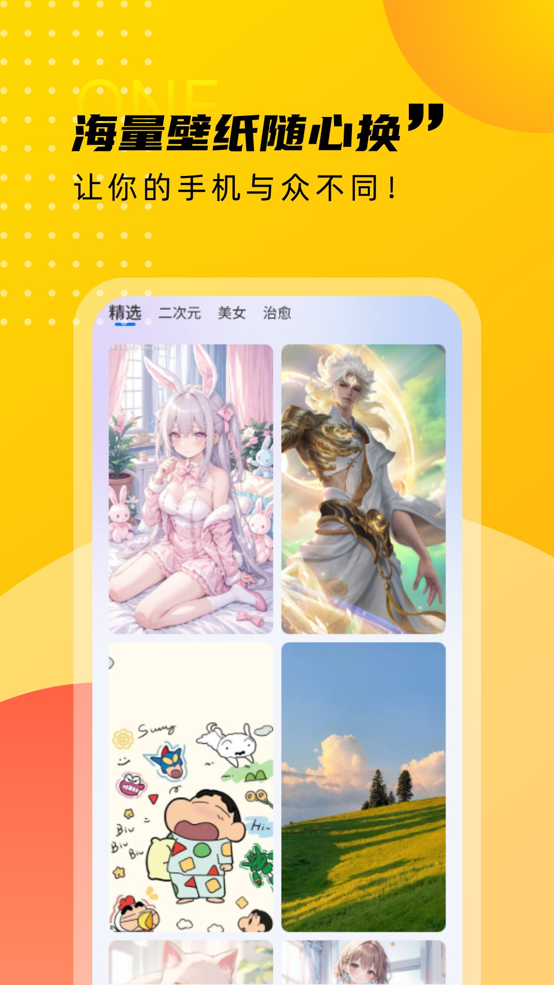 1.打开应用后,在主界面浏览分类栏目,或通过顶部搜索框输入关键词查找目标壁纸。