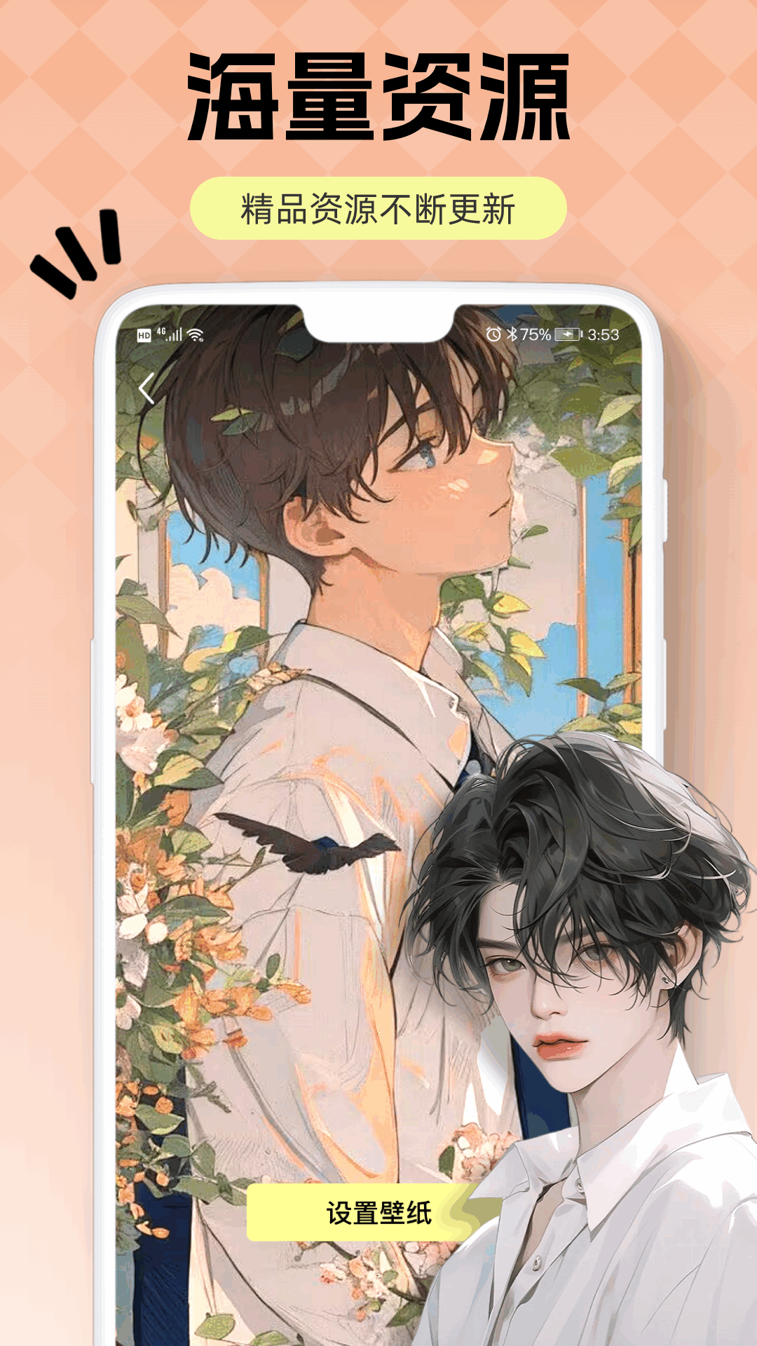 可以看见进入之后可以观赏壁纸的样式,还可以设置微信QQ来电秀,然后我们点击设壁纸。