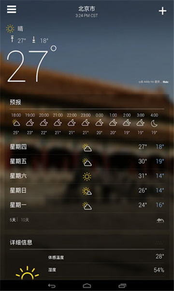 城市:还可以自由添加热门的城市天气,拥有不同的精美照片可以查看。