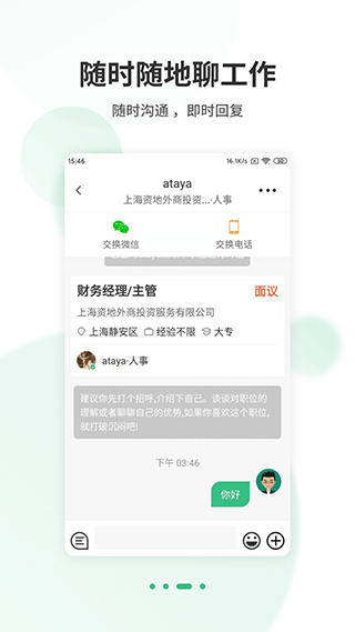 2、直接对话,自由挑选:与潜在雇主实时聊天,深入了解岗位需求,选择最适合自己的老板。