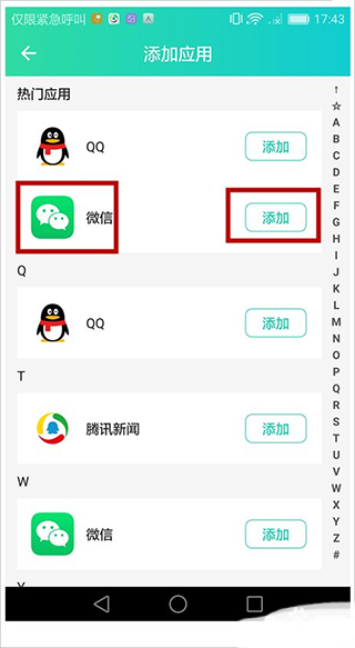 通过点击主界面上的”+” 号,将您想开启小号的应用(比如微信等)加入进来。