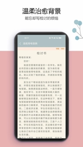 写锤子检讨书app有着干净的界面,强大的文案生成功能,可以快速写出各类模版的检讨书。不同场景下的文书内容都可按需生成,操作步骤简单易懂。用户只需填入关键信息与篇幅要求,短时间内就能得到完整文稿,不管是学生还是职场人士都能轻松使用,省去构思与撰写的繁琐过程。