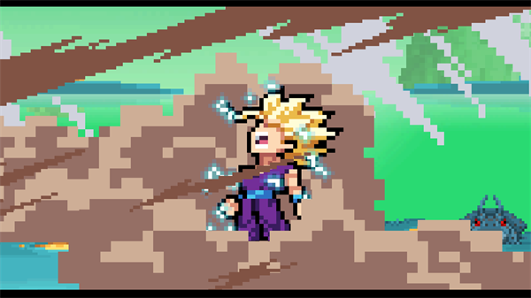 4、场景设计融合标志性场景,细节处加入像素化爆炸、气功波特效,兼顾怀旧与视觉冲击力。