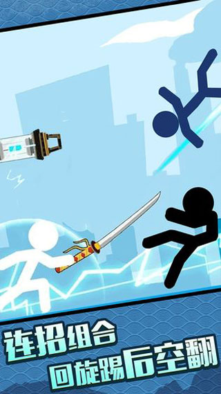 4、控制火柴人左右飞旋或二次飞旋可以将他们踢飞进而战胜他们。
