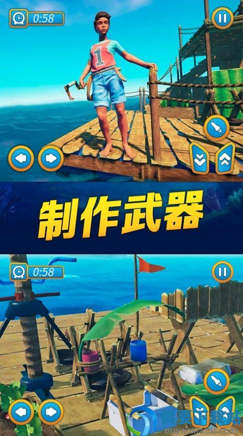 3、建造木筏,升级自己的船只,逃离这个孤岛,小心海上的猛兽带来的袭击。