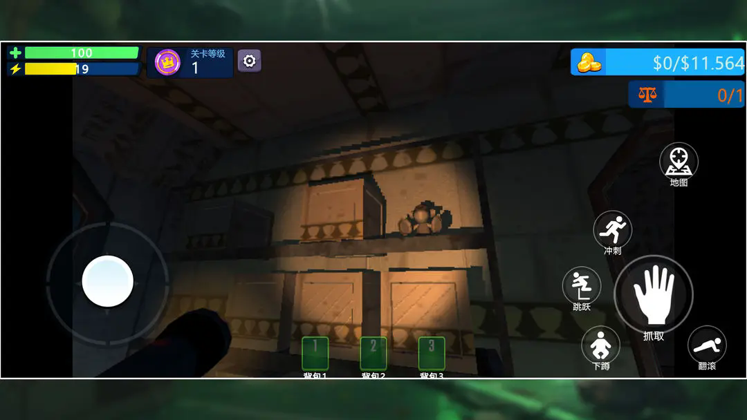 5、右侧按键区包含“下蹲”“跳跃”等交互功能键,长按或点击触发对应动作。