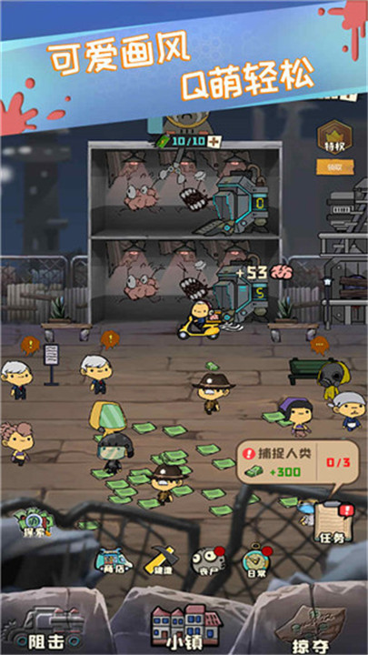 3、建造小镇,圈养丧尸,吸引更多的人类过来,一起来秘密培养你的丧尸军团吧;