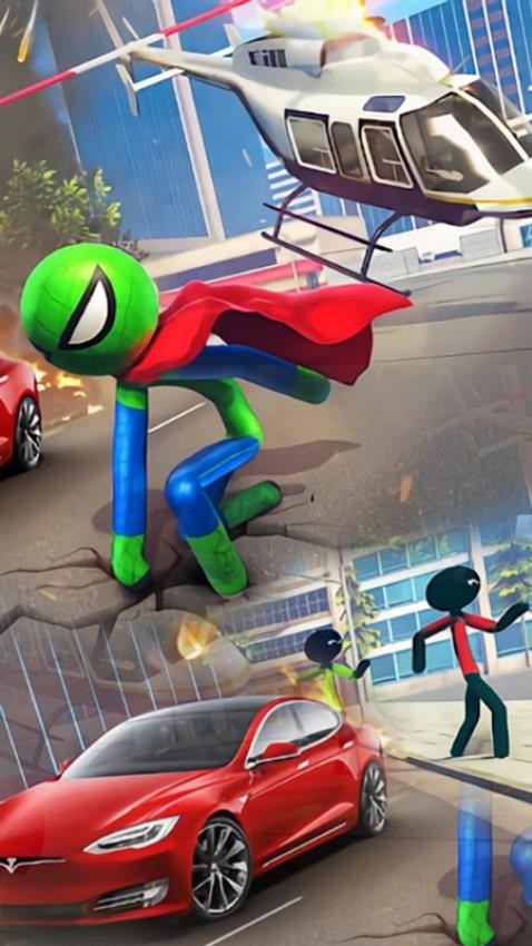 火柴人城市大冒险是卡通风格的火柴人英雄对战手游。玩家将化身火柴人蜘蛛侠,利用蛛丝在楼宇间穿梭,搜寻并击败城市中的反派。游戏可解锁重型枪械、坦克、直升机等装备,带来爽快刺激的都市战斗体验。