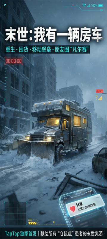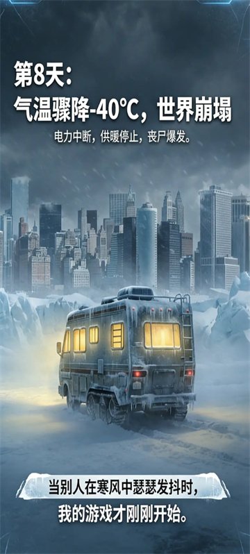 世界末日重生设定:玩家在世界末日前7天重生,手握500万元启动资金,带着上辈子被背叛的记忆,核心目标是赚钱,囤货,修改房车,避免重蹈覆辙。