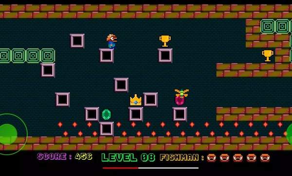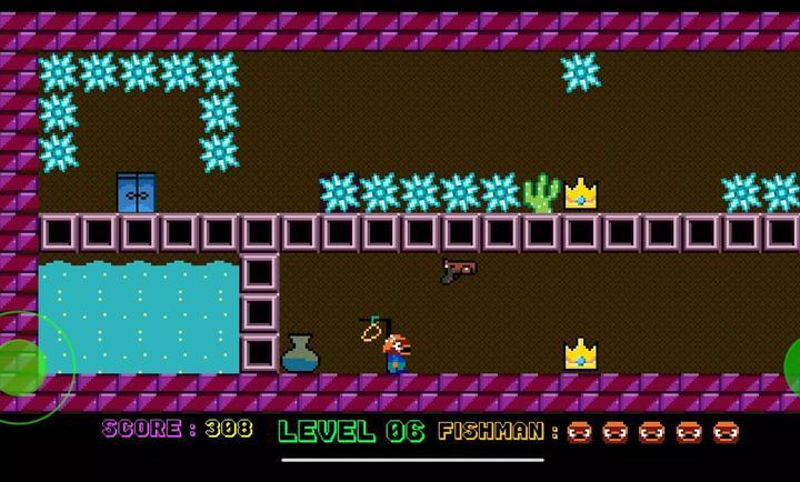1、游戏的目标是收集财宝以进入下一关,当Fishman试图逃离一个废弃的地牢时,他要通过十个可怕的关卡。