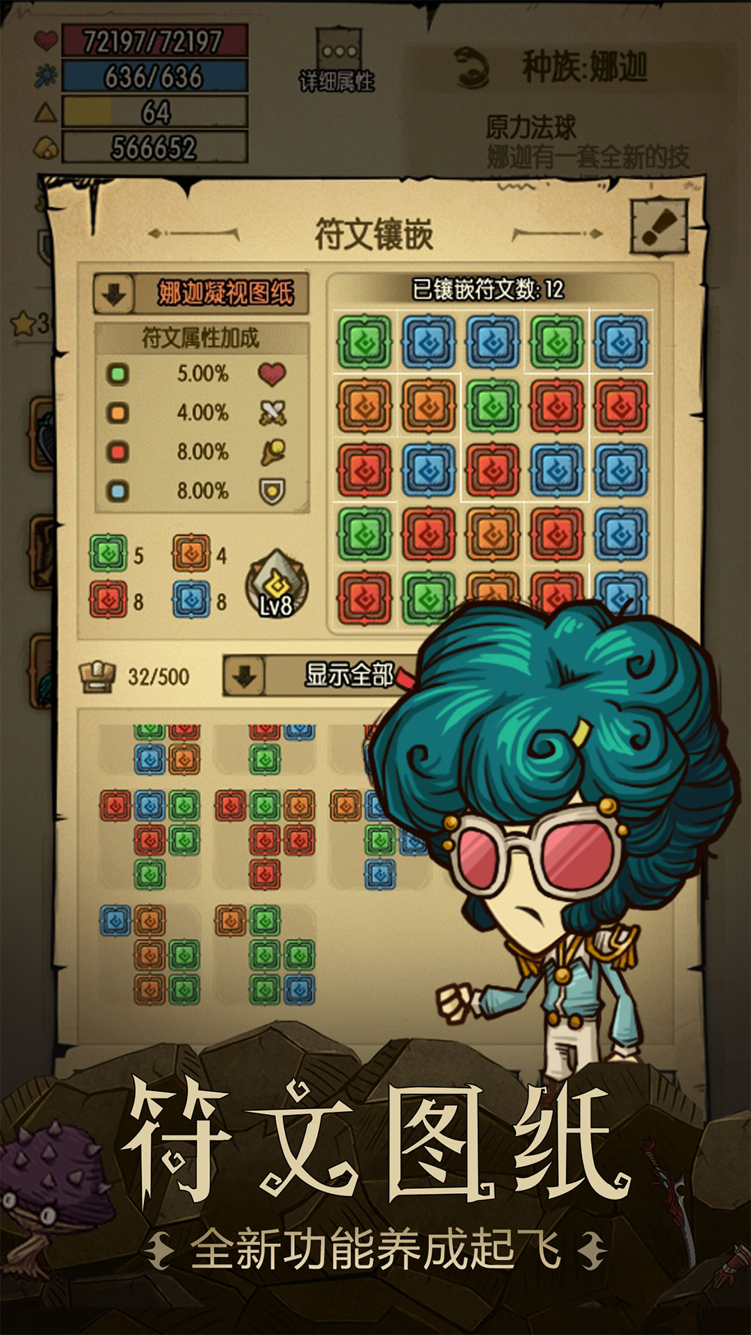角色养成:升级分配属性点(力 / 敏 / 魔 / 体),解锁技能树,搭配技能应对不同挑战。