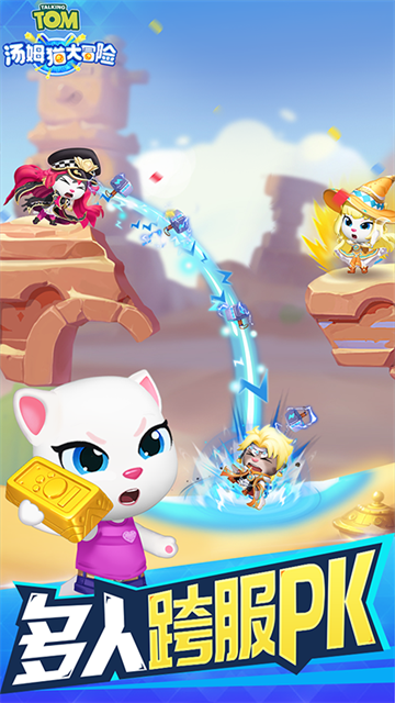 汤姆猫大冒险是一款Q萌卡通+抛物线弹射+策略竞技的休闲动作手游,以汤姆猫家族为主角,开启拯救星球的奇幻冒险。玩家操控汤姆猫、安吉拉等角色,通过调整角度与力度发射炮弹,在森林、沙漠等多样场景中闯关打怪、对抗黑暗势力。游戏融合PVE剧情闯关、1v1/3v3实时PVP、BOSS 挑战等多种模式,支持武器搭配、宠物养成与时装收集,操作轻松有策略,竞技休闲两不误,和汤姆猫一起踏上热血又欢乐的弹射冒险之旅!
