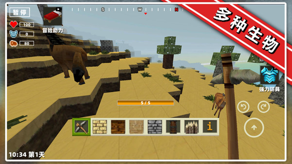 简易基地:用泥土 / 石头搭建 3×3×2 临时庇护所,放置篝火照明驱兽,确保夜晚安全,为后续创造提供稳定环境。