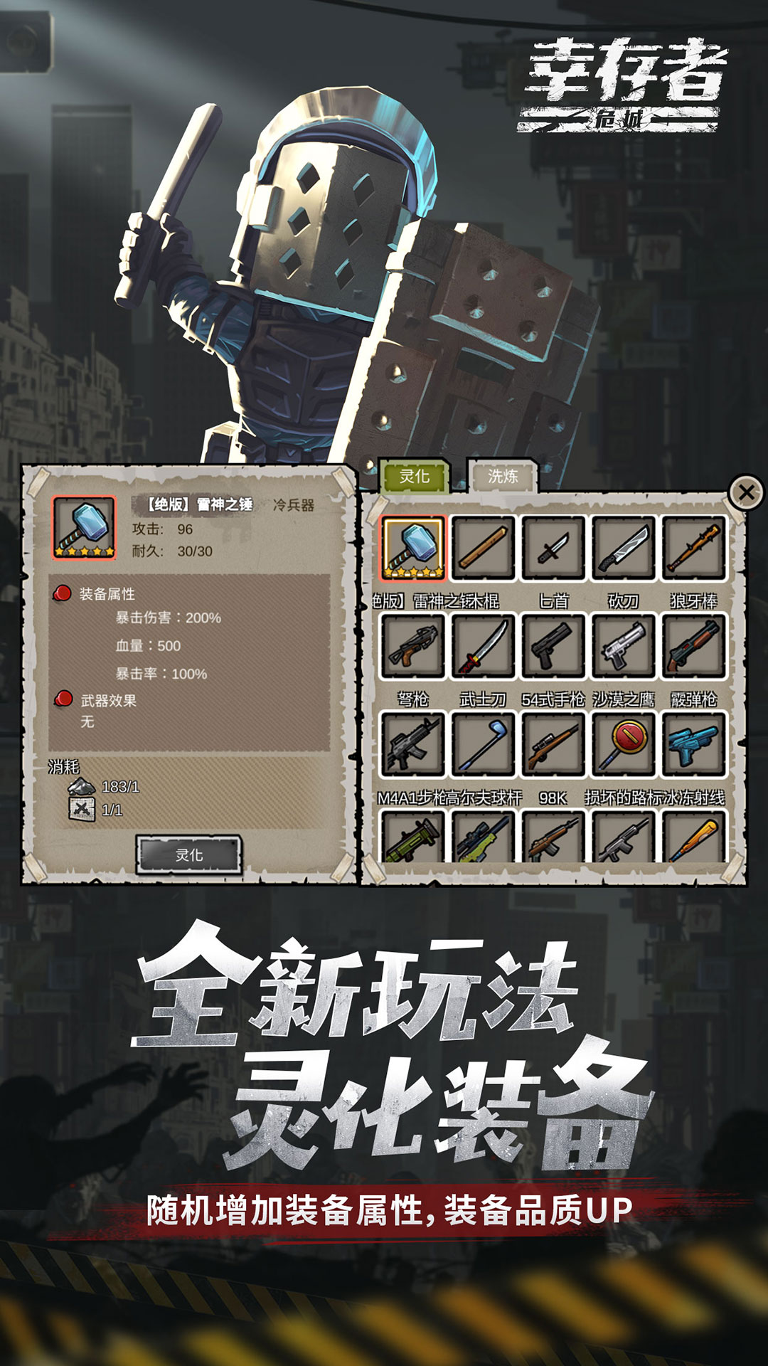 战斗成长:冷兵器为主(木棒 / 指路牌),热武器留 Boss;靠走位躲攻击,用范围道具清尸潮。