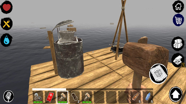 第 3 步:建筑锤(2 木板 + 2 塑料)→扩建木筏;