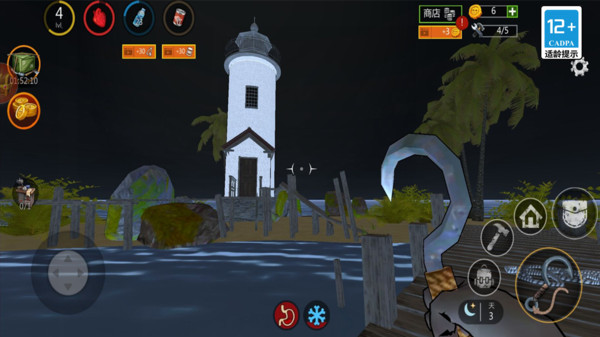 环境威胁:昼夜交替(夜间视野差、体温流失快)、暴风雨(甲板积水需清理)、海洋生物(水母 / 河豚,触之中毒);
