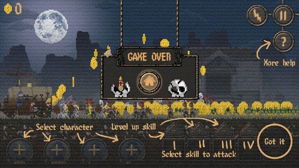 敌人总是从右边出现,角色会使用普通攻击进行自动攻击,这用于对付较少的敌人来说已经足够了,但是想要对付较多的敌人还是的靠技能输出。