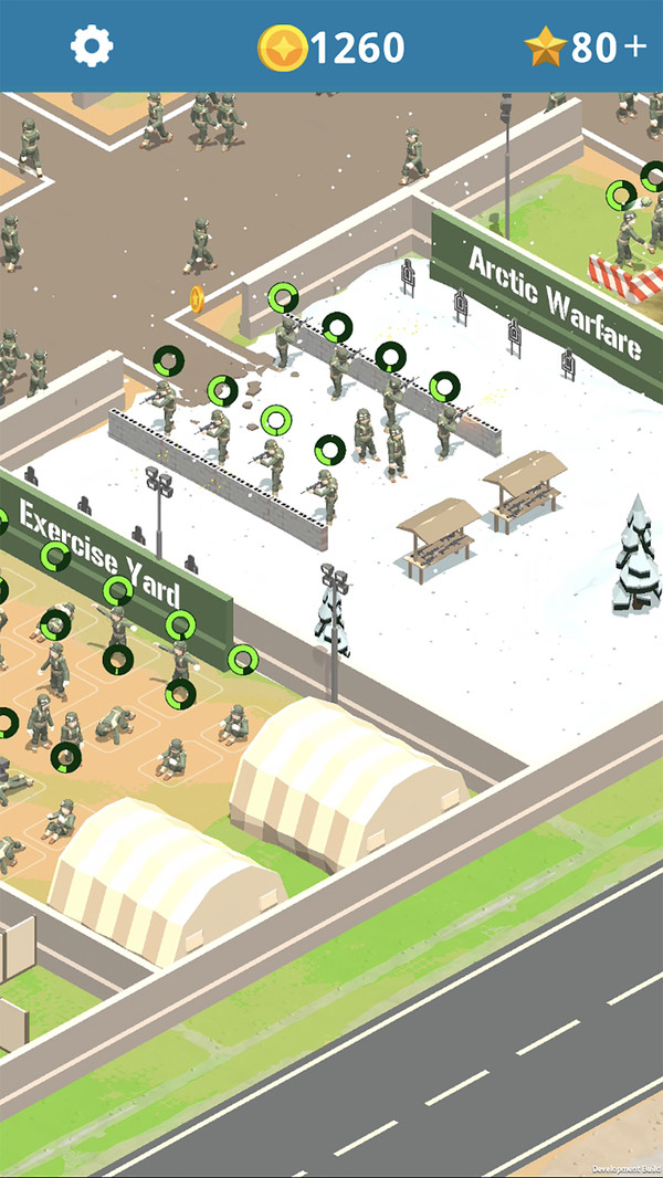 1、放置军事基地里简单的游戏玩法,每一个玩家都能体验。