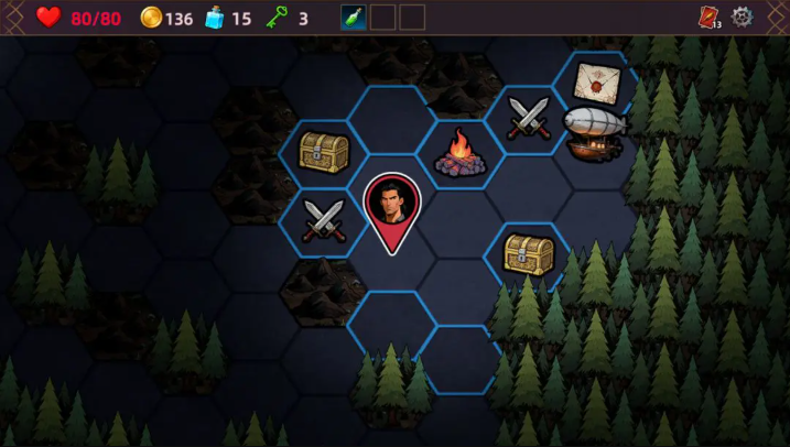 2、六边形地图探索:采用高容错率的六边形地图设计,玩家可以在迷雾笼罩的大陆上自由探索,发现各种随机事件和挑战。