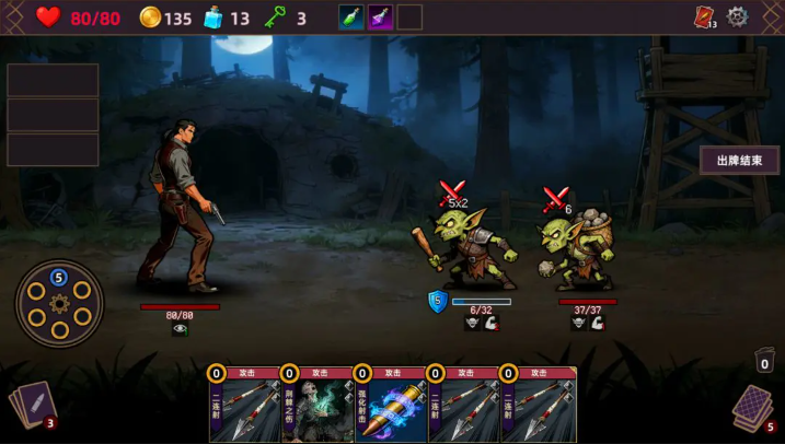 3、遭遇战斗后,就会展开回合制的卡牌对战,点击卡牌即可使用。