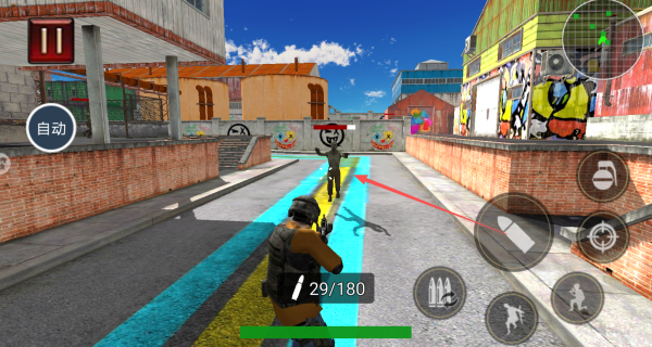 1、我们可以点击右侧的射击按钮直接进行射击的,将场景中所有的僵尸全部都消灭掉。