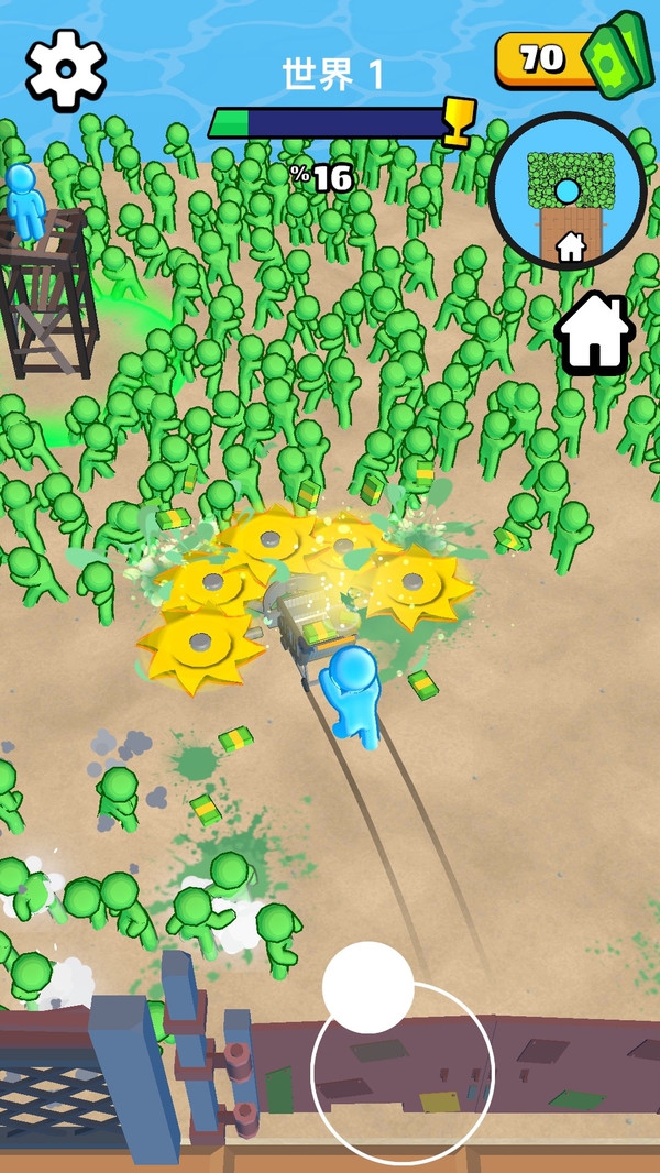 1、驾驶战车在废墟中横冲直撞,无情碾压迎面而来的僵尸群,感受畅快淋漓的破坏快感。