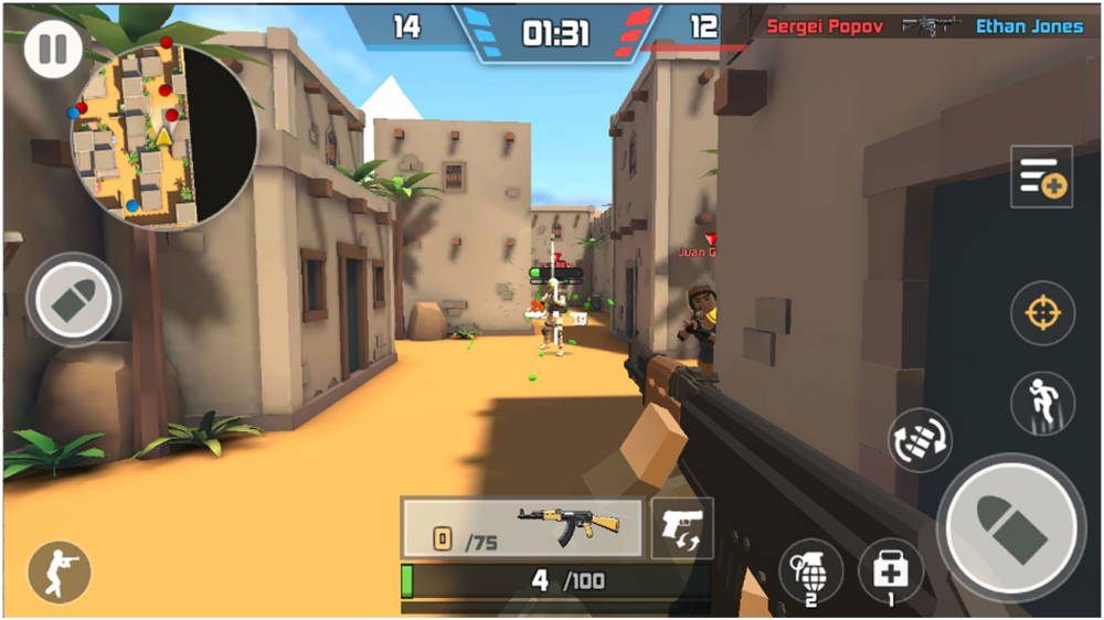 2、在地图中寻找敌人,精准瞄准并射击以击败对手,获得战斗胜利。
