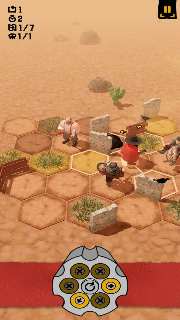 1、玩家可以向身边的格子进行移动,利用左轮来射击对应方向敌人。