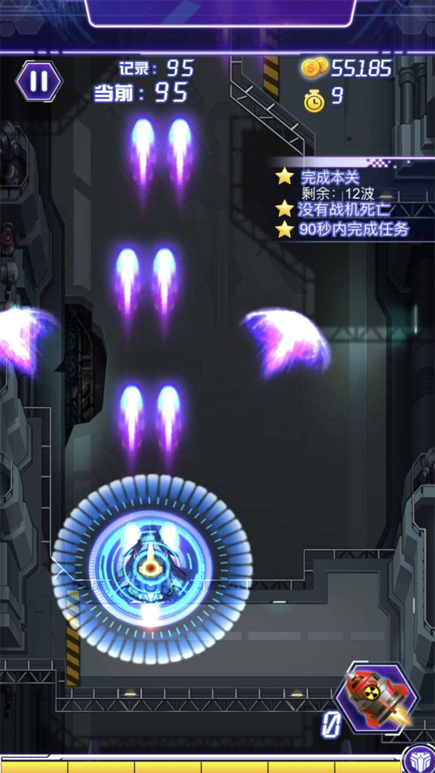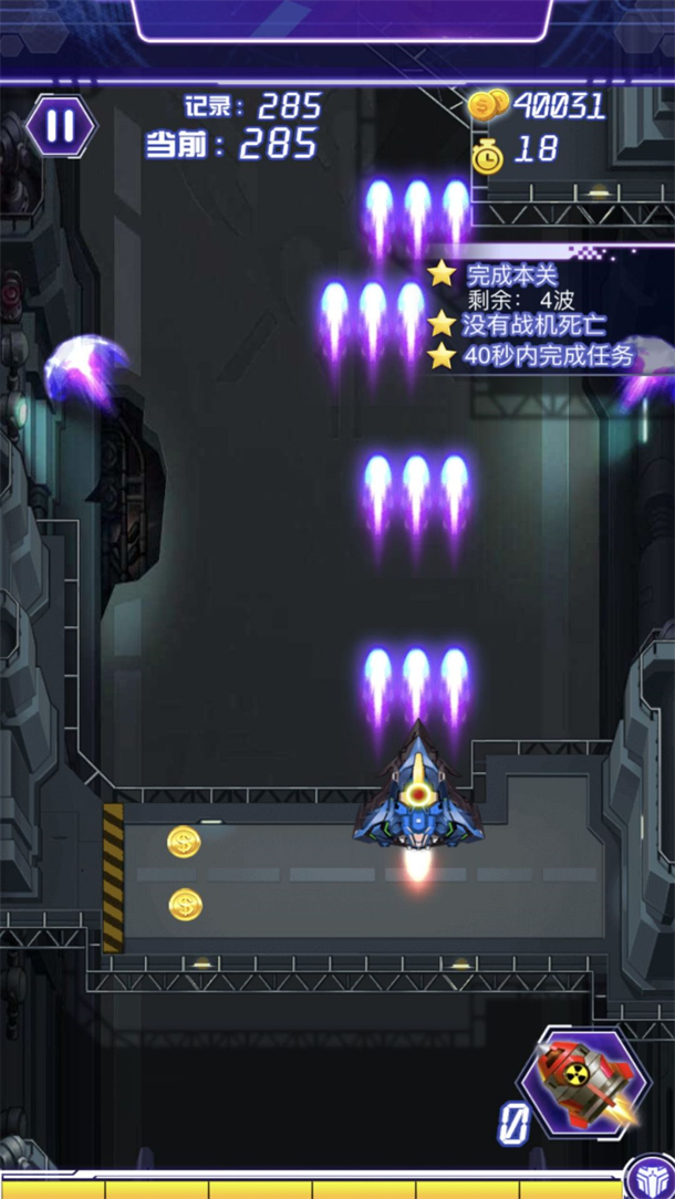 2. 核弹留着对付第六关那艘会分裂成三艘的母舰,它分裂瞬间无敌且会释放全屏扩散环,只有核弹的强制清场能破这个机制。