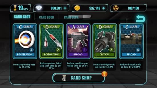 2、丰富的武器改装系统与独特的技能卡牌组合,让简单的割草射击演变为极具策略深度的生存对抗体验。