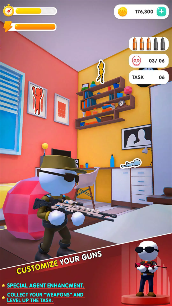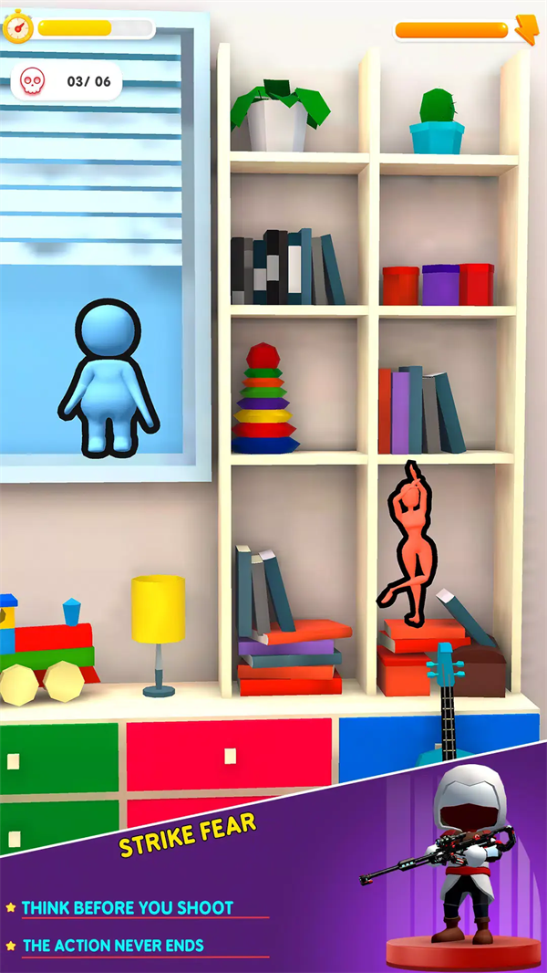 刺客狙击手是一款主打沉浸式狙击暗杀的射击闯关游戏,玩家将化身精英狙击手解锁各类枪械执行高难度契约任务,沉浸式体验潜行狙杀的快感。游戏里的目标多隐匿在掩体之后,玩家需极致细心观察战场、预判目标动向,结合不同武器的特性制定狙杀策略。巧用枪械的性能优势与战场环境完成精准击杀,就能顺利闯过层层高难度关卡,体验专业狙击手的实战乐趣。