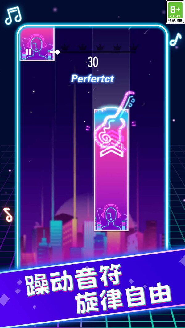1、在快慢交替的音符瀑布中沉浸于音乐世界,享受指尖跃动的成就感与放松愉悦的心情。