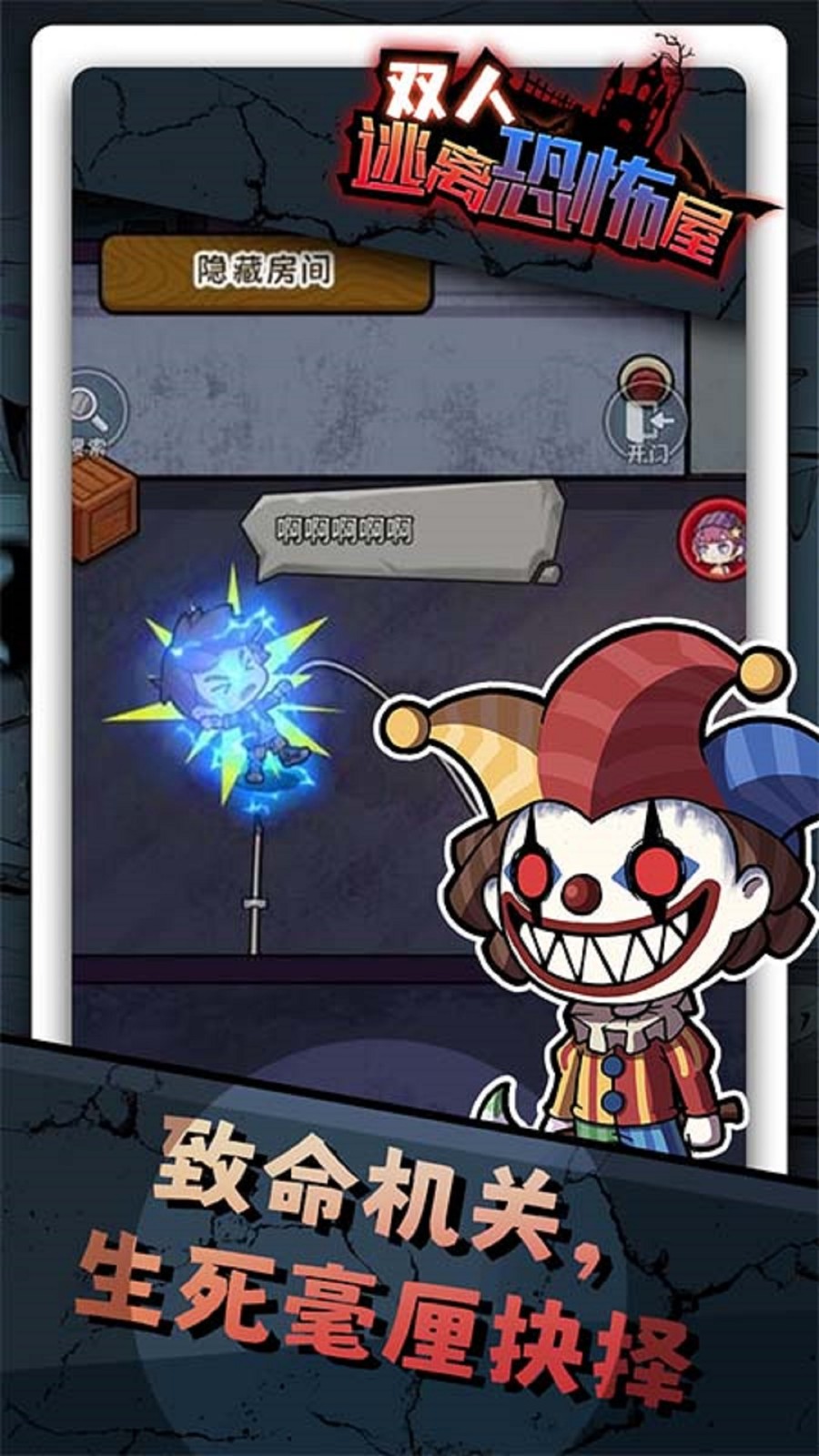 双人逃离恐怖屋是一款双人协作玩法的惊悚逃脱手游,主打密室解谜与求生逃亡玩法。玩家需结伴深入阴森诡谲的古宅,相互配合破解各类机关谜题。游戏借助暗沉光影与沉浸式音效烘托惊悚氛围,搭配怪物追捕和各式陷阱,全程氛围感十足。本作十分考验双人默契配合,喜欢惊悚逃生与联机解谜的玩家,快来开启刺激的密室冒险。