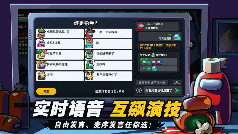 扮演内鬼的玩家则是要制造混乱并抓住机会杀死所有人!船员们快喊上你的好友,准备开一局紧张刺激又欢快的太空狼人杀!