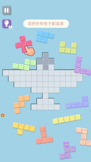 1、在方块拼图关卡中将散落的碎片拖动到正确位置,旋转角度使其拼接成完整的图案。