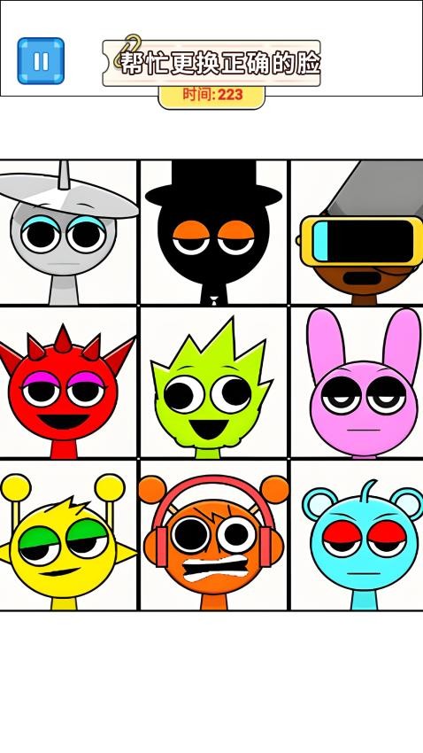 2、帮忙更换正确的脸,游戏界面显示很多怪物,你需要找到正确的脸部。