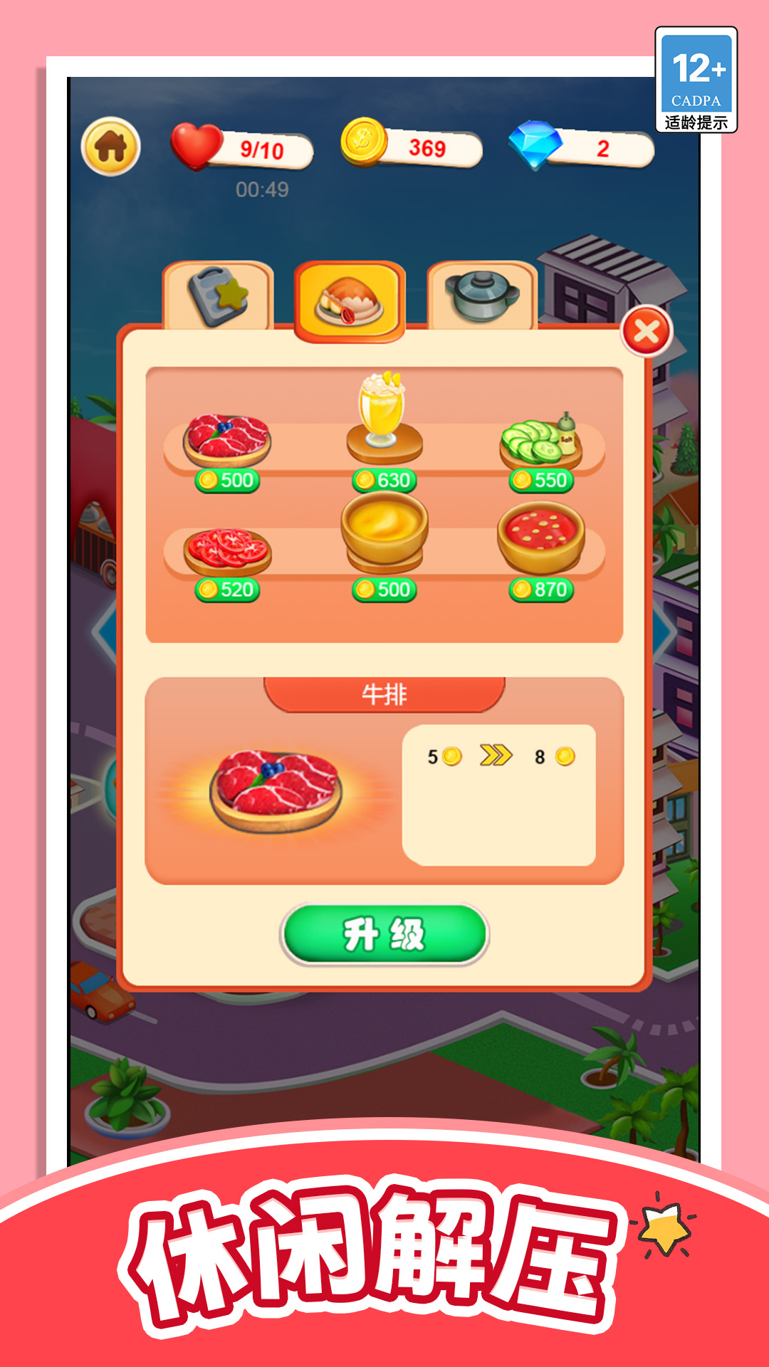 2、碎片时间就能玩,等公交、休息时打开游戏,几分钟就能完成一道菜,缓解生活压力。
