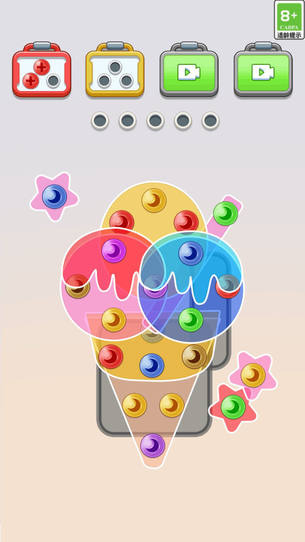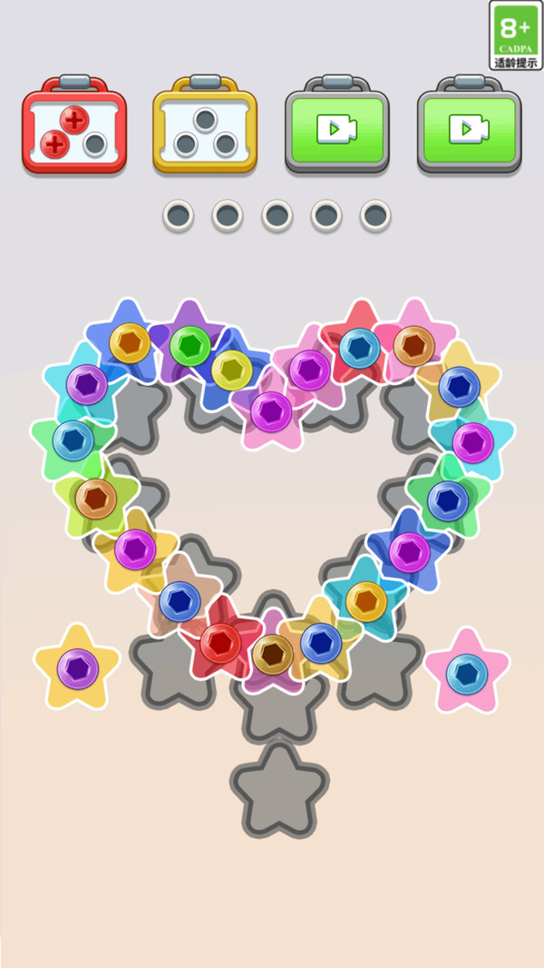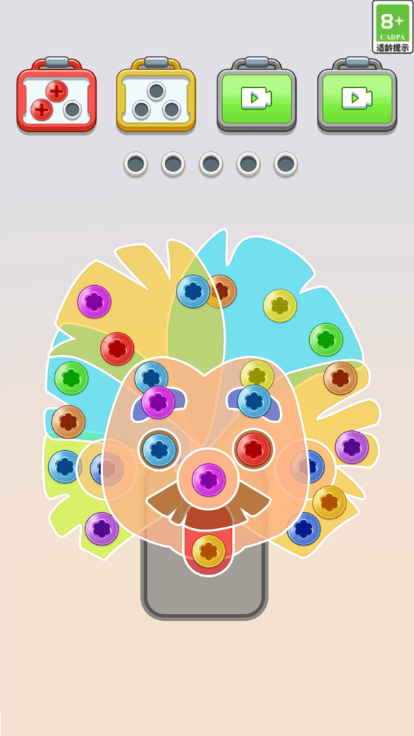 2、提供“加孔位”“敲碎板块”等道具,帮助玩家突破卡关困境,道具可通过任务或广告免费获取。