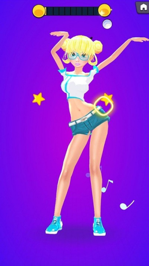 1、玩家需通过点击控制女孩身体部位,使其舞姿连贯优美,并随音乐节奏完成表演以获取星星奖励。