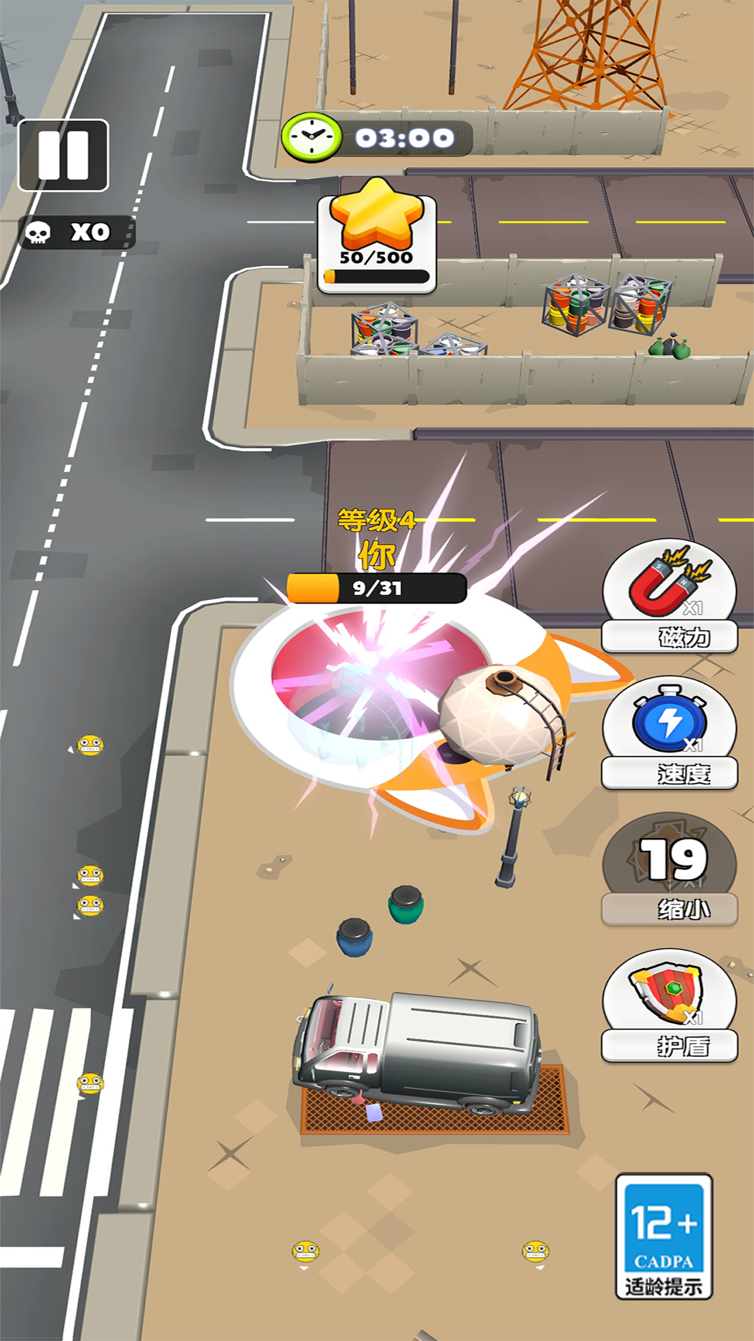 2、不断吞噬场景中的各种物品,比如文具、车辆、建筑,让自己体积变大。