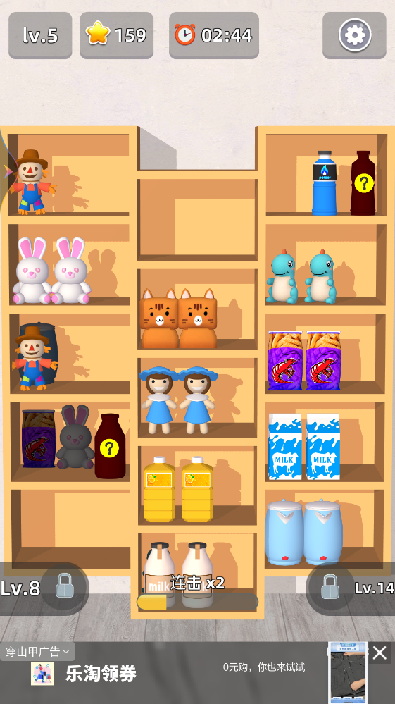 1、以仓储收纳为主题,将整理与消除玩法相结合。