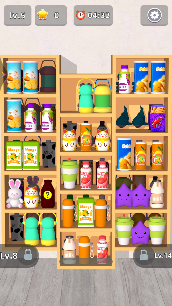 多元玩法丰富体验:部分关卡设有时间限制增添挑战,还支持排行榜功能,可与其他玩家比拼收纳效率。