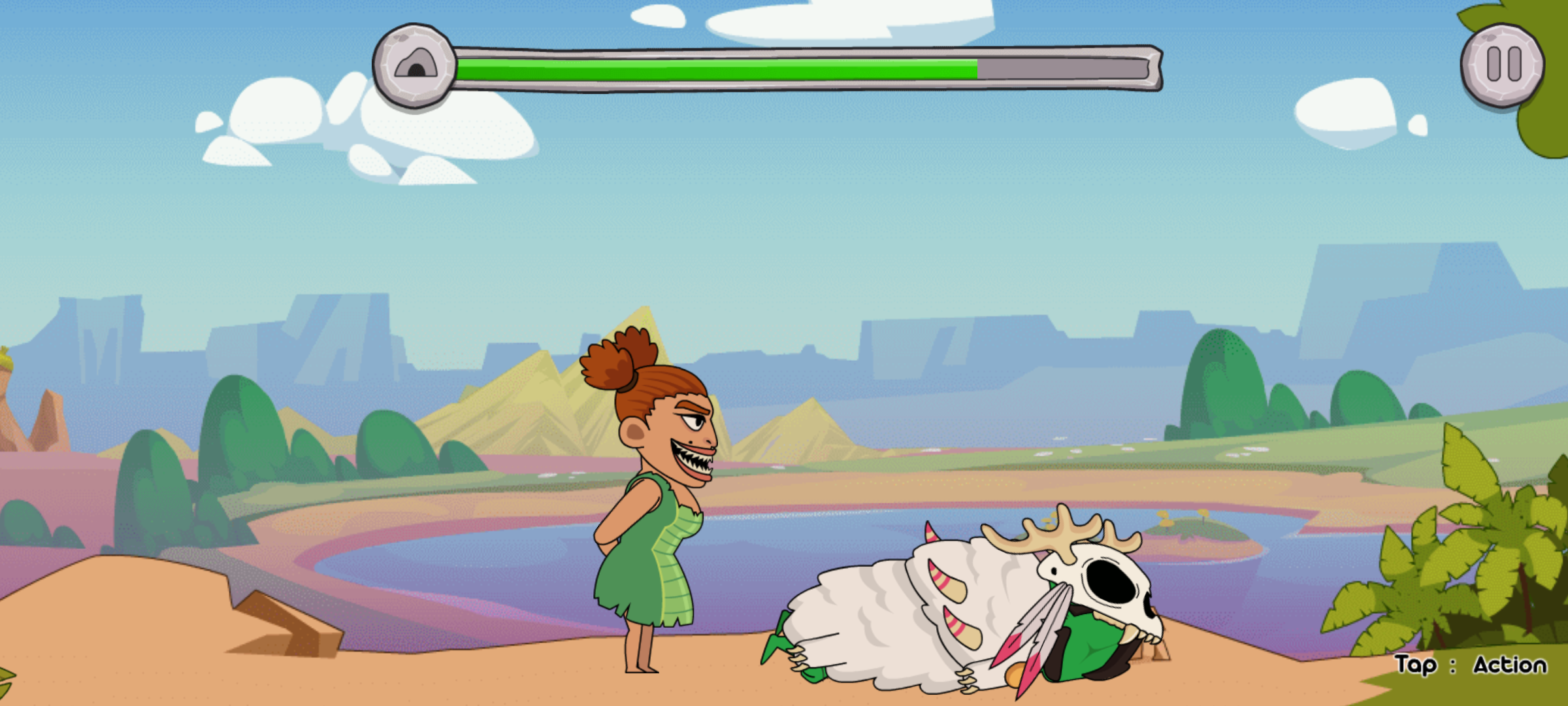 2、场景和人物的装扮等设计符合石器时代的游戏背景。